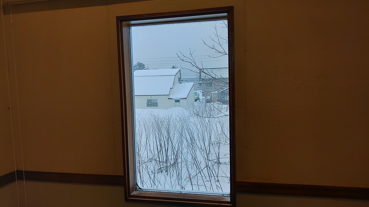 まあ絵じゃないんですけど、階段の踊り場にある窓から見える景色が、屋内の快適性と対比になってさながら額に飾られた雪原の絵です。