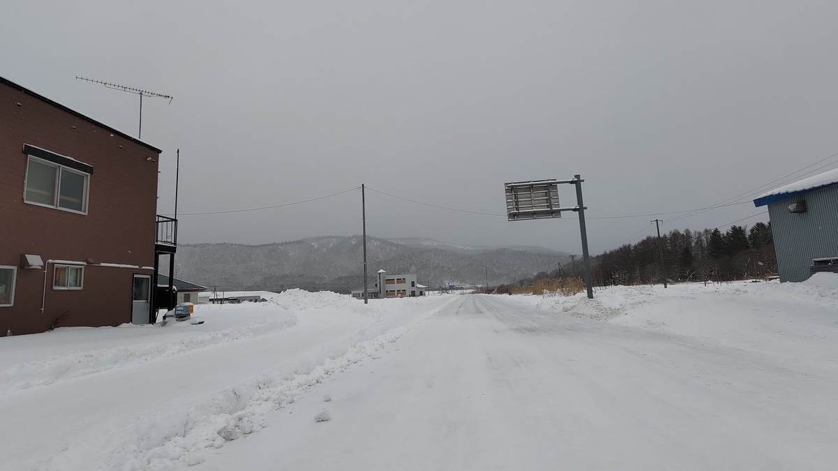 糠南駅から出ようとするにも、あまりの積雪でブーツに雪が入るくらいでした。でも流石に周囲を散策したいので、表層をどかして埋もれない高さに整地してから踏み固める感じで先を切り開きました。